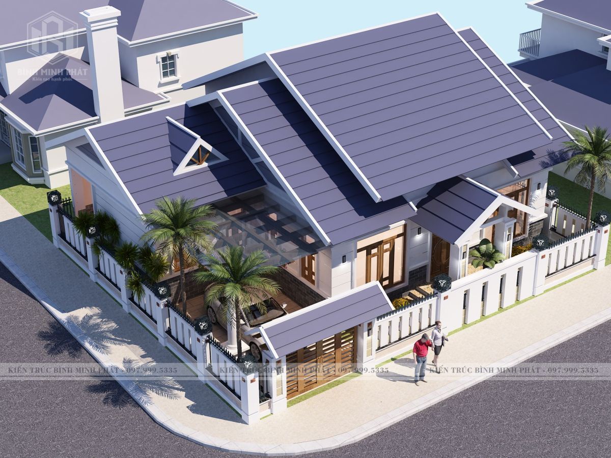 Phối Cảnh căn biệt Thự 1 Tầng mái thái hiện đại BT104