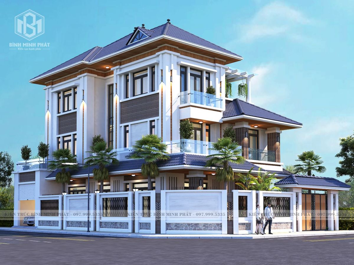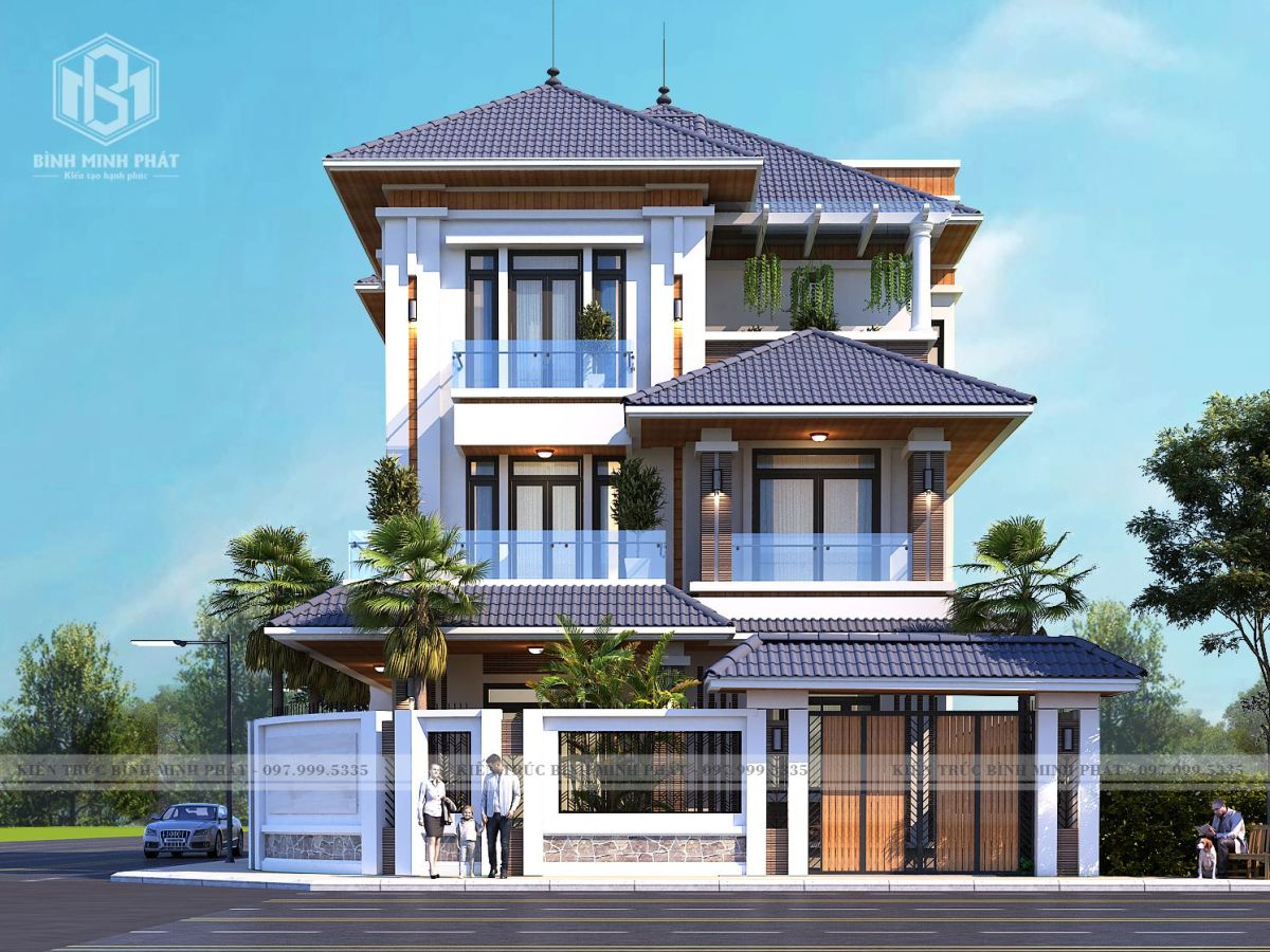 Toàn cảnh của biệt thự mái nhật 3 tầng tại Quảng Bình BT315