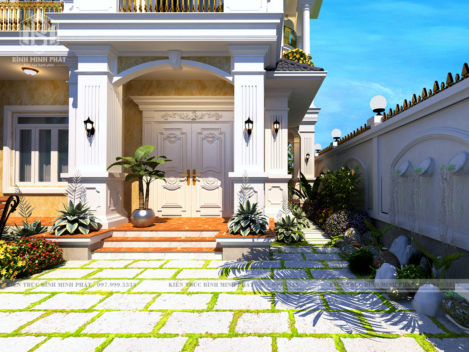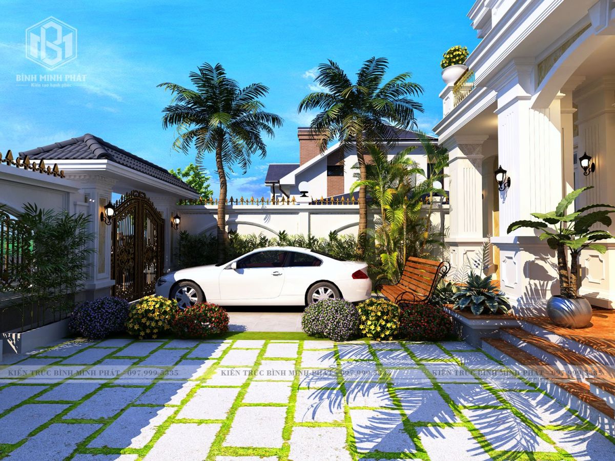 Khu vực sân vườn cuả biệt thự 3 tầng tân cổ điển mái thái BT309