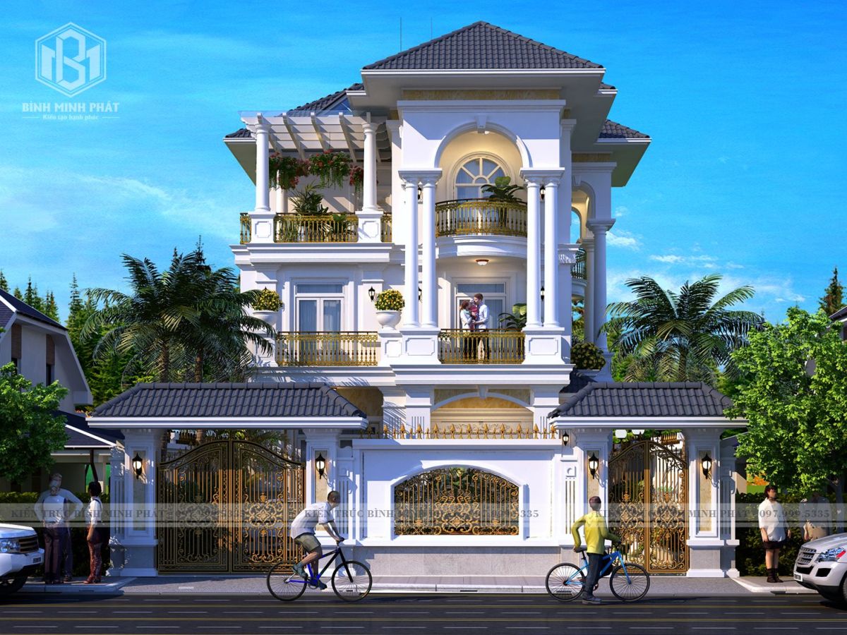 2. Phối cảnh 3D của mẫu thiết kế biệt thự tân cổ điển 3 tầng BT309