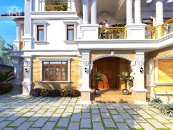 2. Phối cảnh 3D của mẫu thiết kế biệt thự tân cổ điển 3 tầng mái Thái BT307