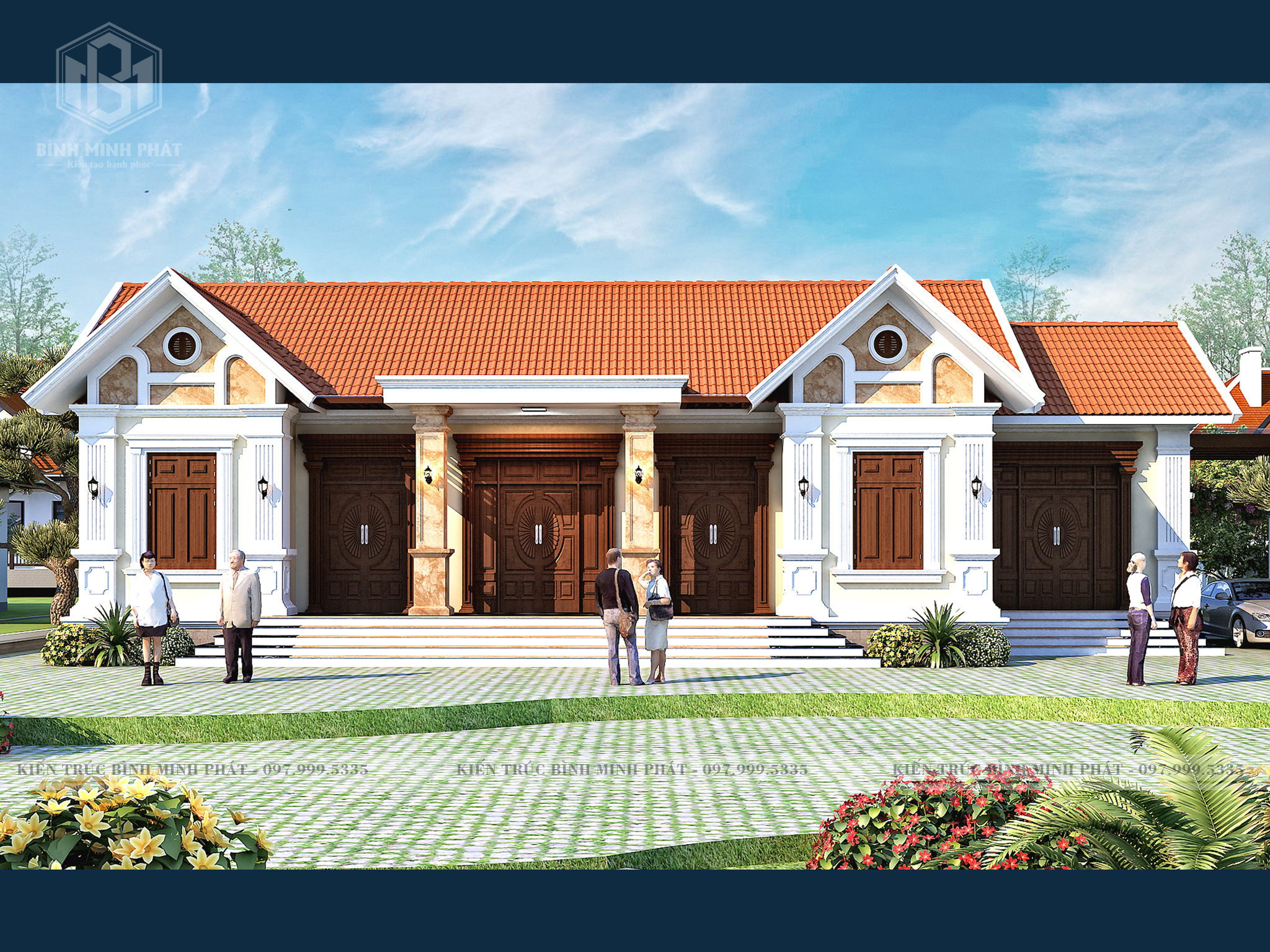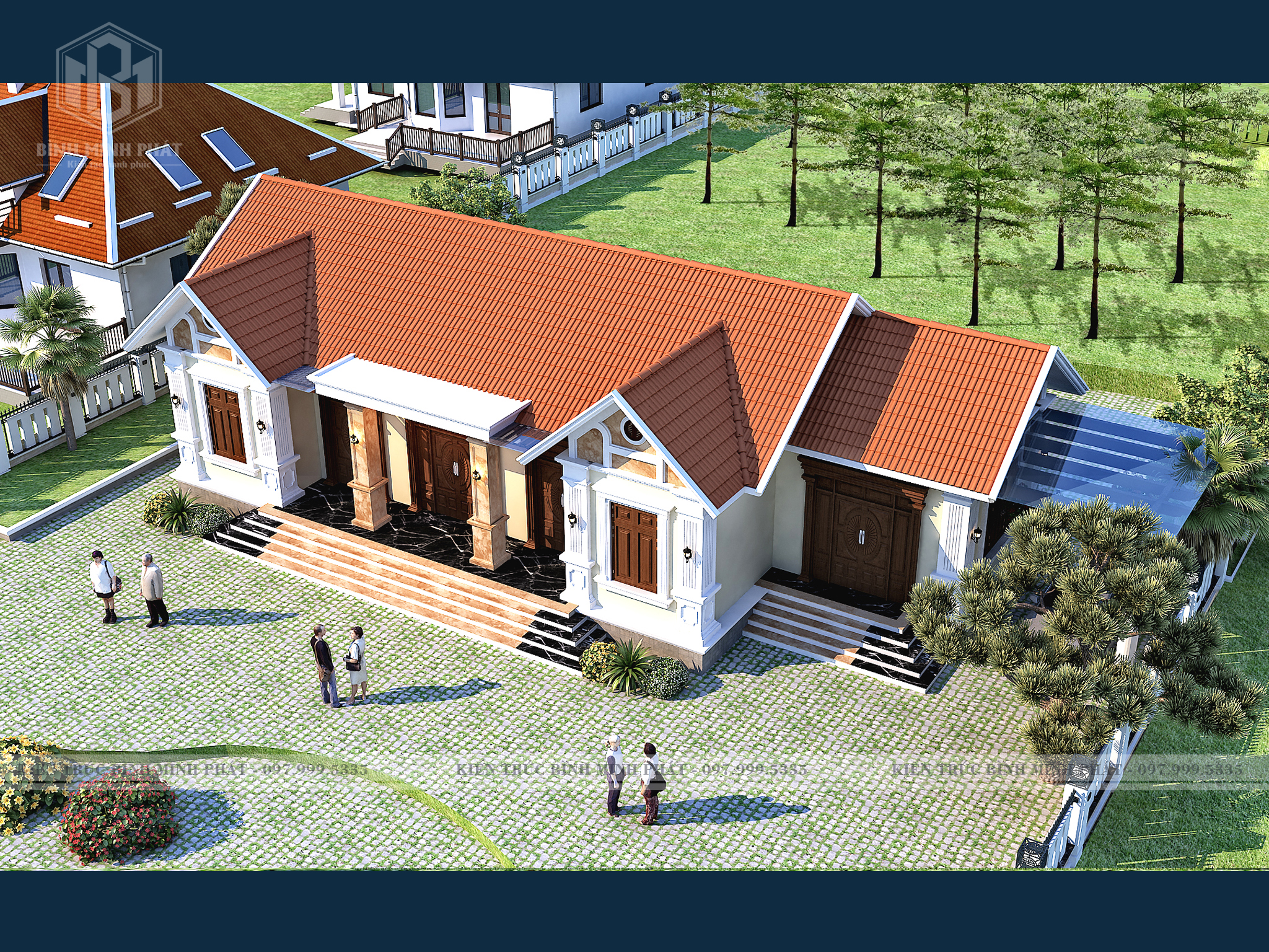 Mọi thông tin về kiến trúc & phong thủy của Mẫu biệt thự vườn 1 tầng mái Thái đẹp sang trọng tại Bắc Giang vui lòng liên hệ HOTLINE Nhà Đẹp Bình Minh Phát : 0979995335 để được giải đáp và tư vấn cụ thể!