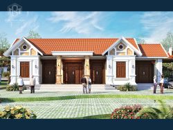 Biệt Thự 1 Tầng Mái Thái phong cách tân cổ điển BT107 được xây dựng trên khuôn viên đất rộng rãi với đầy đủ công năng giúp gia chủ có một cuộc sống tiện nghi tại tổ ấm hạnh phúc của mình. Tập trung vẻ đẹp vào hình khối cân xứng, đường nét trang trí đơn giản không quá nhiều chi tiết nhưng vô cùng tinh tế tạo nên sự quý phái và kiều diễm cho ngôi biệt thự này.