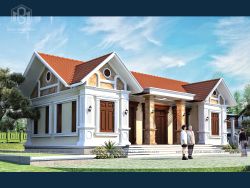 Hình Ảnh Hoàn Thiện biệt thự vườn 1 tầng mái thái tân cổ điển BT107
