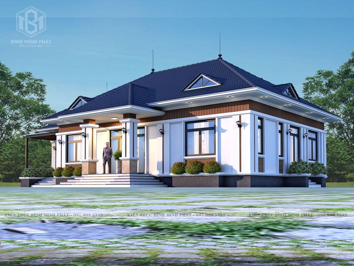 Mẫu thiết kế biệt thự 1 tầng phong cách hiện đại là công trình Bình Minh Phát gửi tới ông Thanh - Chủ đầu tư ở Bỉm Sơn - Thanh Hóa. Đặc thù công việc được thăm quan nhiều nơi, cũng như chiêm ngưỡng nhiều công trình , đẹp ở khắp nơi trên thế giới nên chủ đầu tư yêu thích vẻ đẹp kiến trúc ở trời Tây. Đặc biệt phong cách tân cổ điển và kết cấu 1 tầng là phong cách yêu thích của cô. Với không gian 1 tầng với hình ảnh ngoại thất được thiết kế với lối kiến trúc vô cùng hoàn mỹ, tinh tế. Sau đây Bình Minh Phát xin gửi tặng cho chủ đầu tư yêu thích vẻ đẹp sang trọng, xa hoa đẳng cấp trong từng chi tiết ngoại thất và không gian nội thất sang trọng, ấm cúng. Đó chính là mẫu biệt thự 1 tầng mái nhật hiện đại mời quý vị cùng xem.