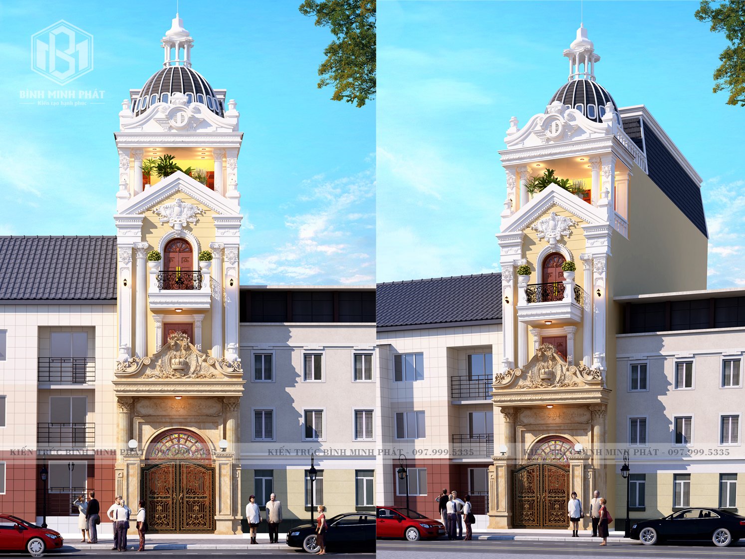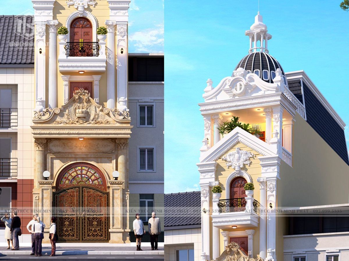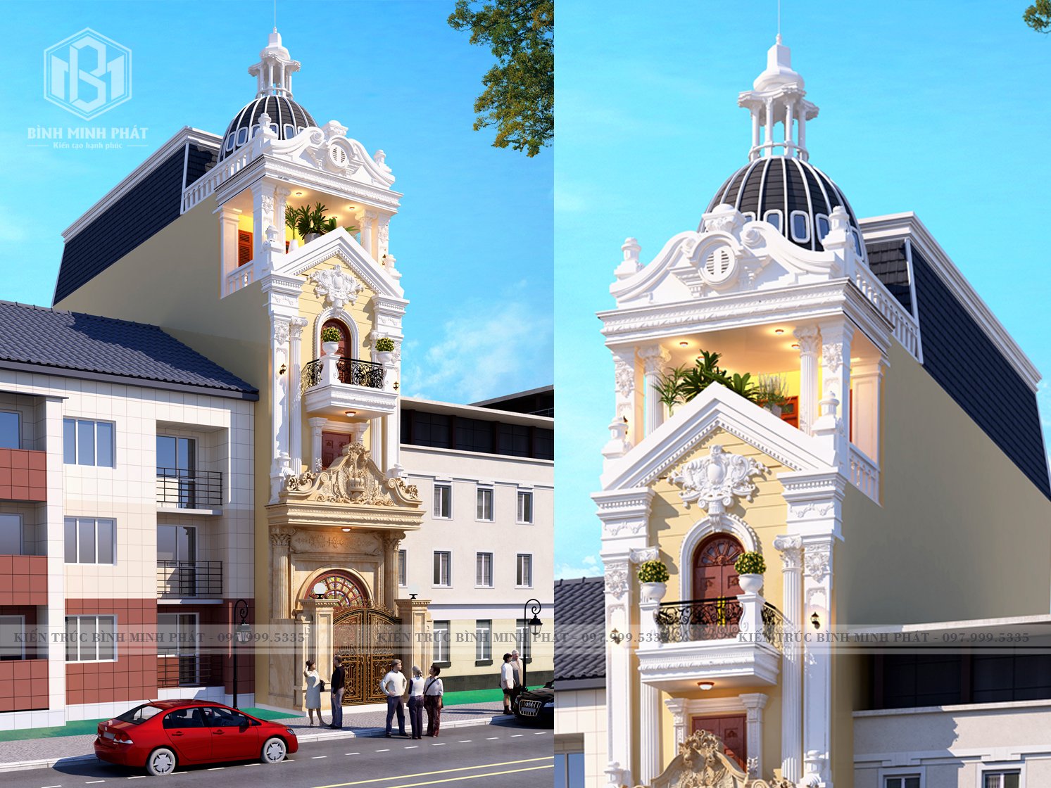 Mẫu nhà phố cổ điển 4 tầng mặt tiền 5m đang là xu hướng thiết kế được nhiều gia đình lựa chọn. Với diện tích 5x18m thì kiến trúc sư có thể thiết kế được đa dạng phong cách khác nhau. Sau đây, Bình Minh Phát xin giới thiệu mẫu nhà mặt phố đẹp sang trọng phong cách cổ điển được thiết kế 4 tầng + 1 tầng áp mái. Ngôi nhà 4 tầng này không chỉ tận dụng được tối đa diện tích mà còn đảm bảo tính thẩm mỹ và phù hợp với xu thế.