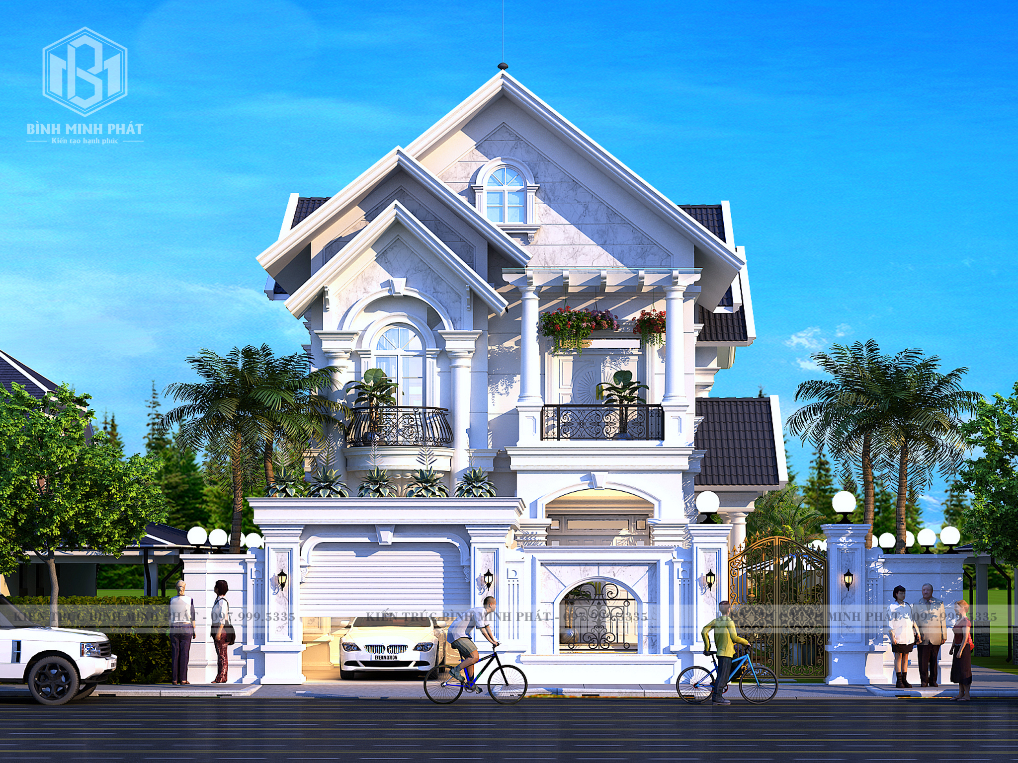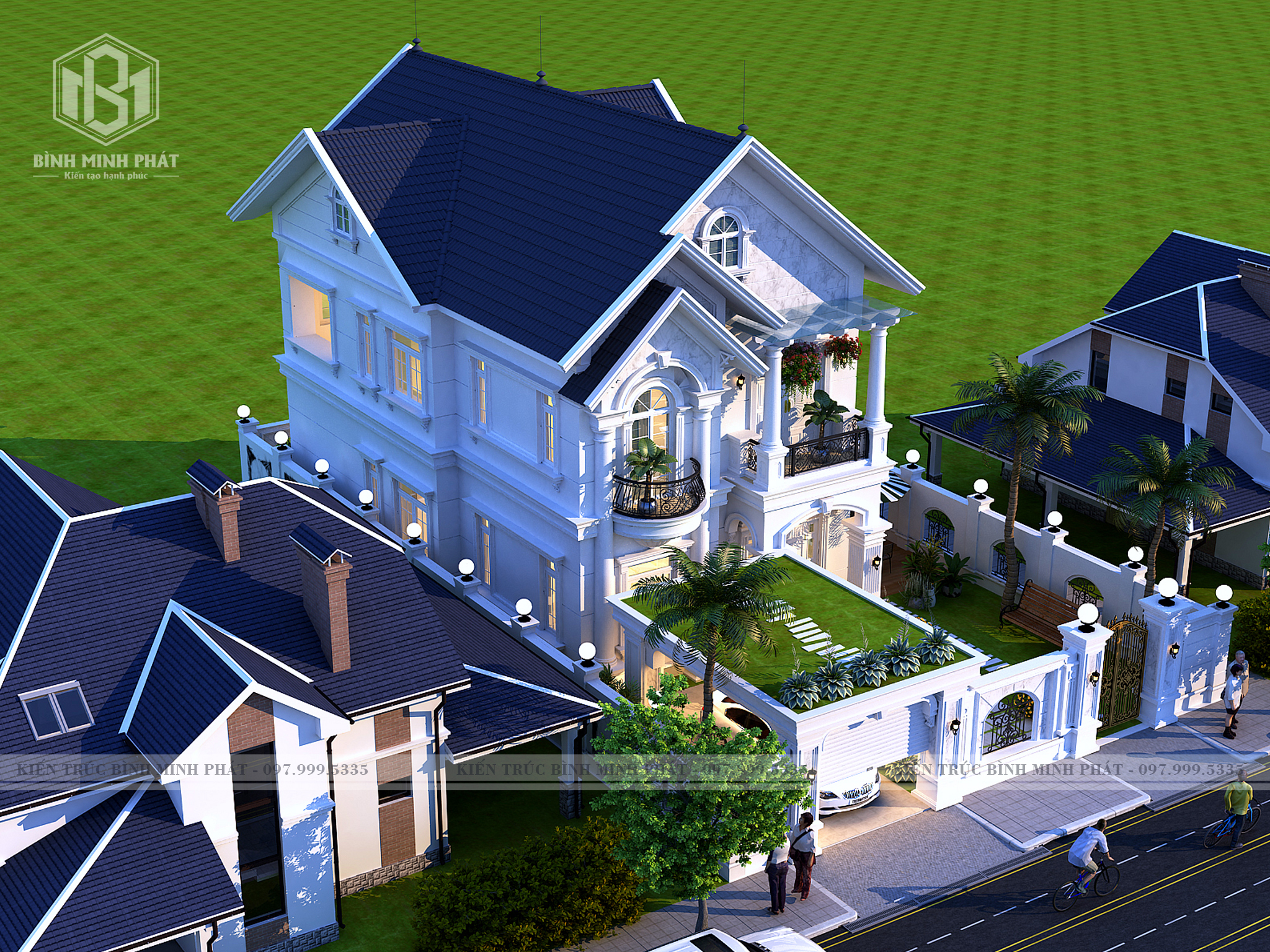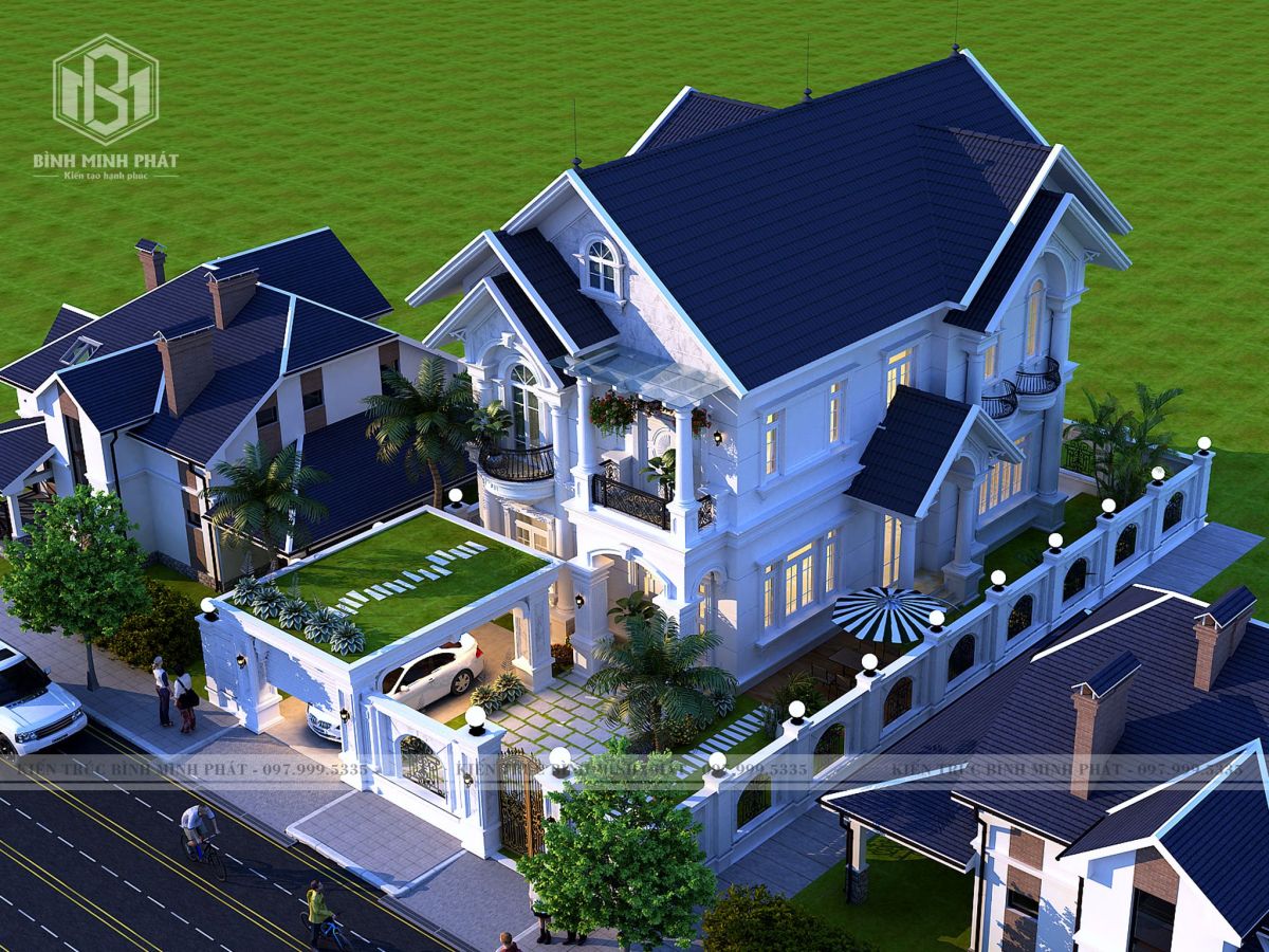 2. Phối Cảnh của mẫu biệt thự 2 tầng tân cổ điển mái thái BT210
