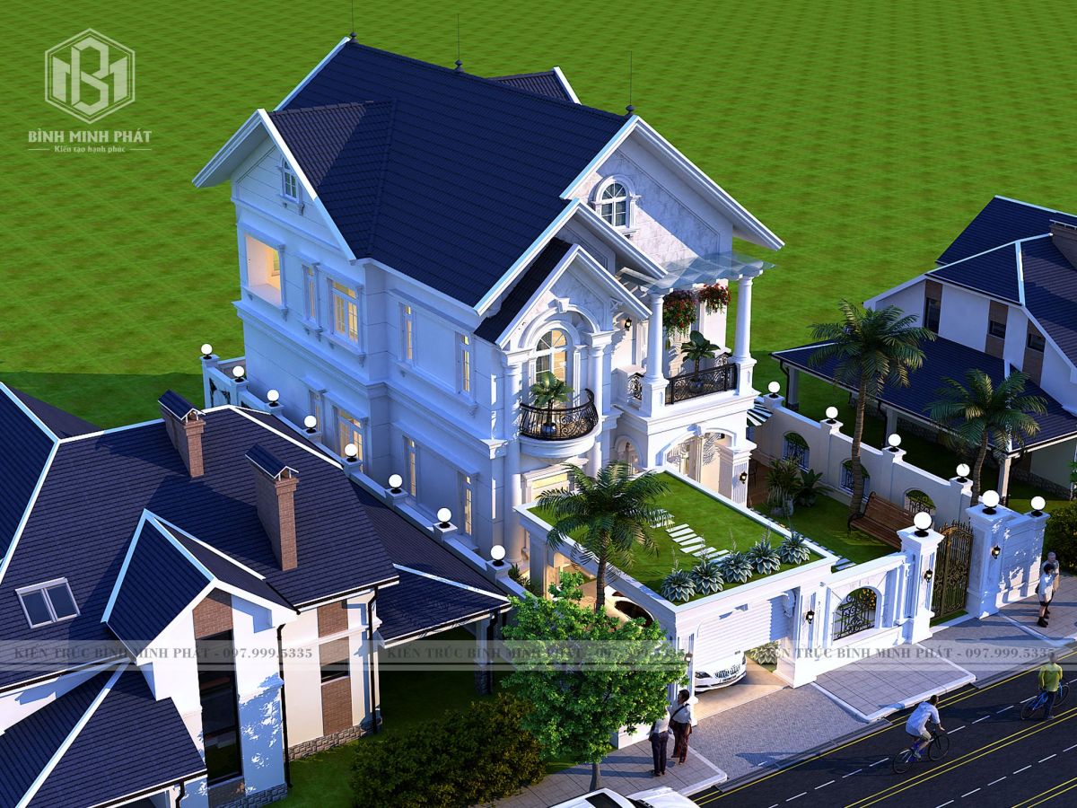Góc chụp từ trên cao xuống của căn biệt thụ tân cổ điển 2 tầng mái thái BT210