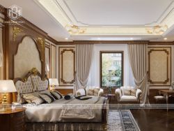 Phòng sinh hoạt chung vẫn là phong cách cổ điển sang trọng với nét đẹp truyền thống mang lại vẻ đẹp thẩm mỹ cao. Mỗi món đồ nội thất đều là tâm huyết của KTS dưới sự yêu cầu của chủ đầu tư. Từng chi tiết, từng món đồ là sự tỉ mỉ, trau chuốt nhằm đảm bảo thiết kế đáp ứng yêu cầu về kỹ thuật mang đến cho không gian nội thất phòng ngủ sự thoải mái và êm ái nhất.