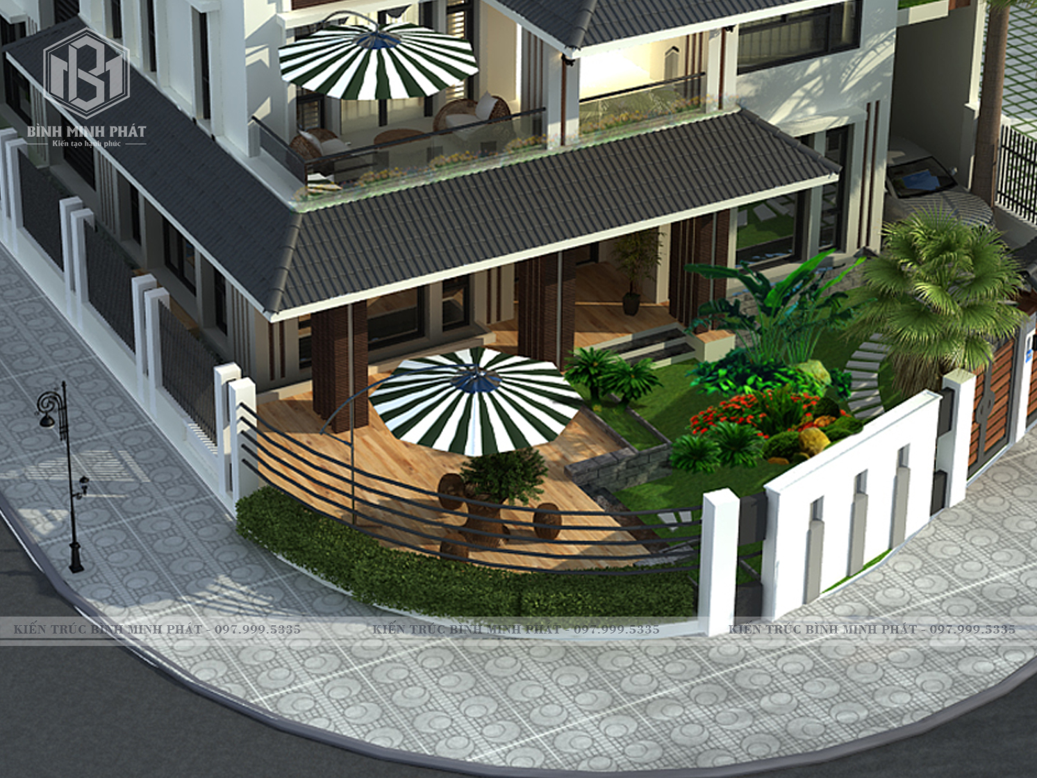 2. Phối cảnh 3D của mẫu thiết kế biệt thự hiện đại 3 tầng tại Hưng Yên BT303