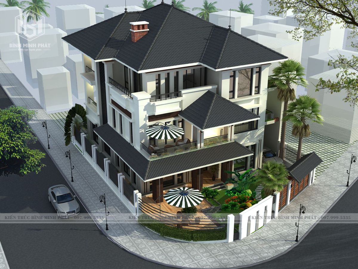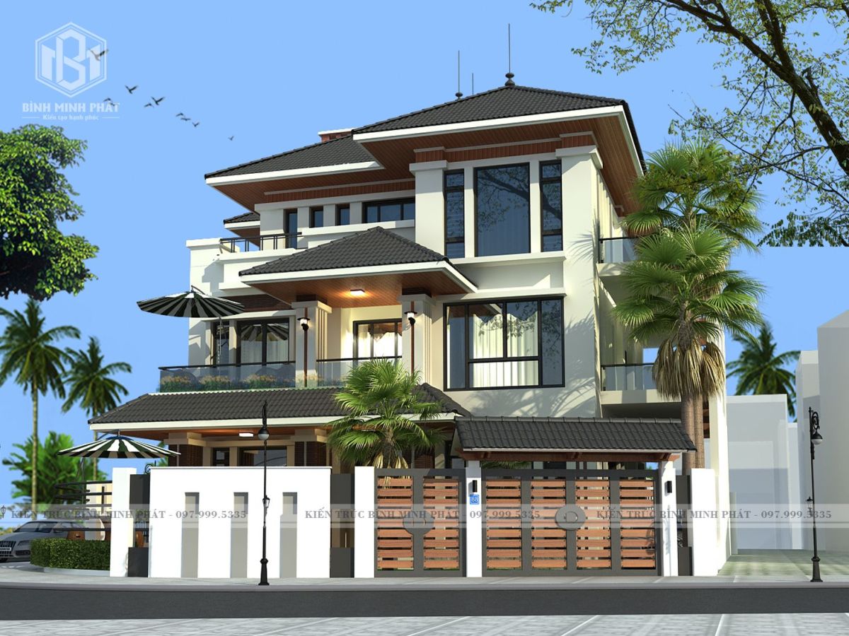 Khởi nguồn từ đất nước mặt trời mọc nhưng mái Nhật vẫn luôn được yêu thích tại Việt Nam và là lựa chọn hoàn hảo cho các mẫu biệt thự vườn phong cách tân cổ điển, khiến công trình toát lên vẻ sang trọng, quý phái nhưng vẫn có nét thanh thoát, gần gũi với thiên nhiên. Mái Nhật có độ cao vừa phải đua rộng ra 4 phía, cùng mái che tại hai sảnh chính phụ và ban công cửa sổ khiến công trình thêm phần bề thế và thanh thoát hơn.
