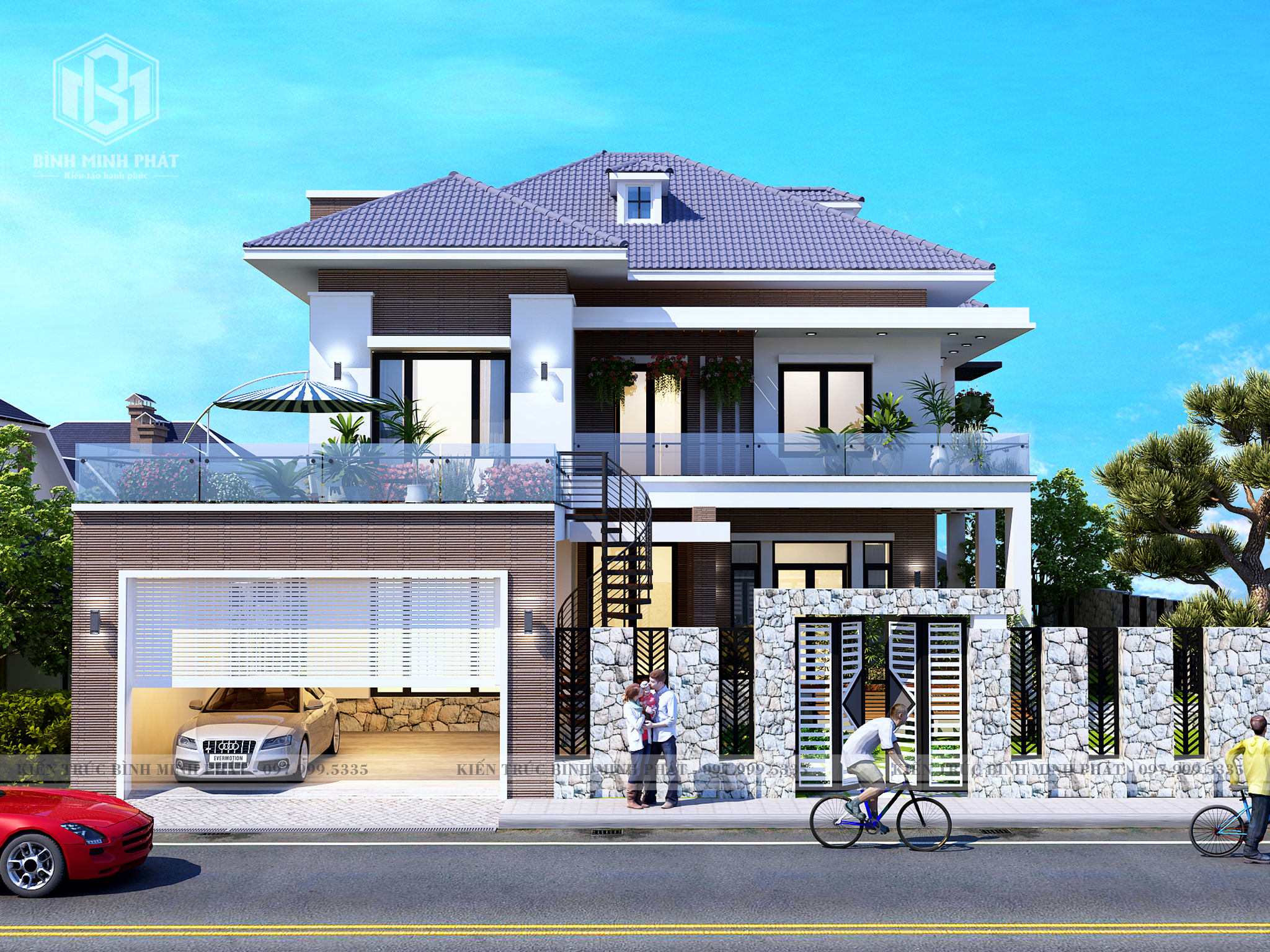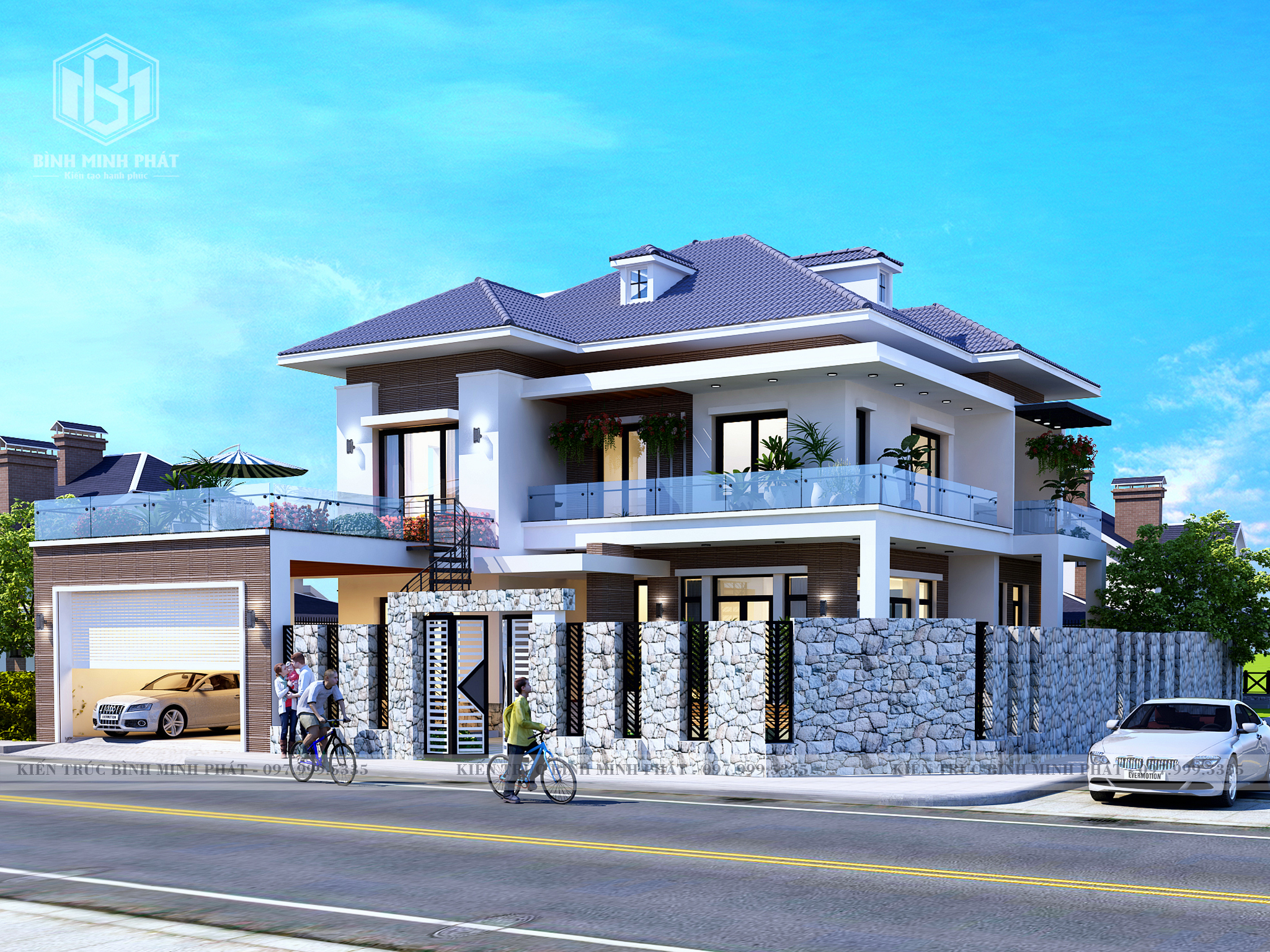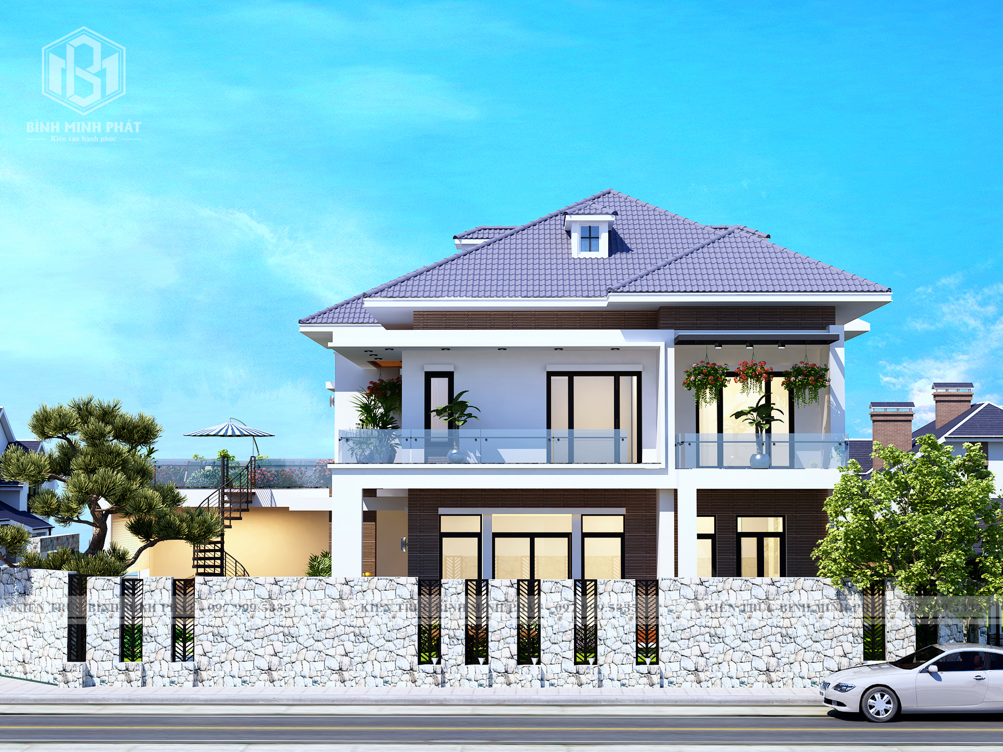 2. Phối Cảnh của mẫu biệt thự hiện đại mái Nhật 2 tầng BT209
