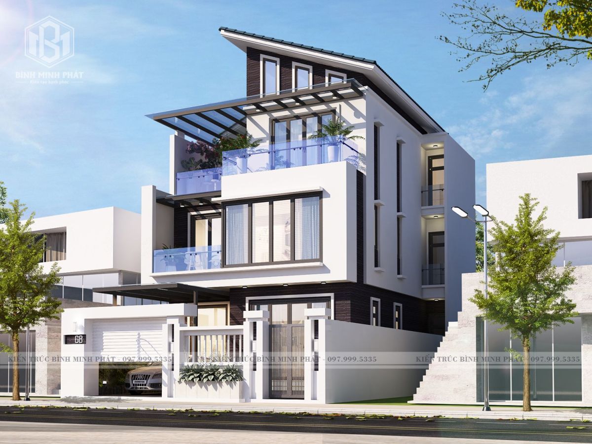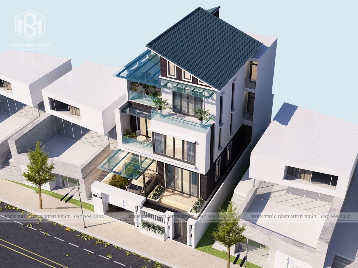 2. Phối cảnh 3D của mẫu thiết kế biệt thự hiện đại 3 tầng tại Hạ Long BT301