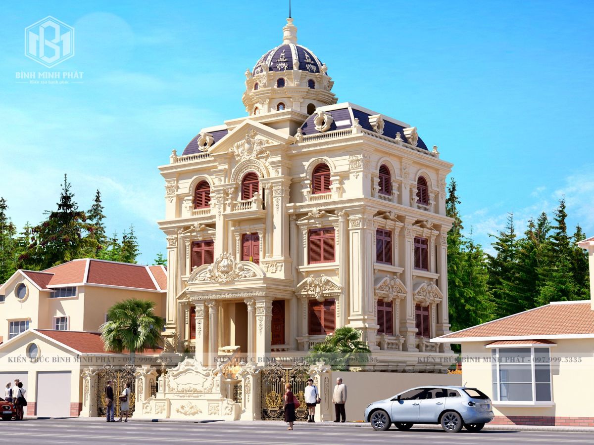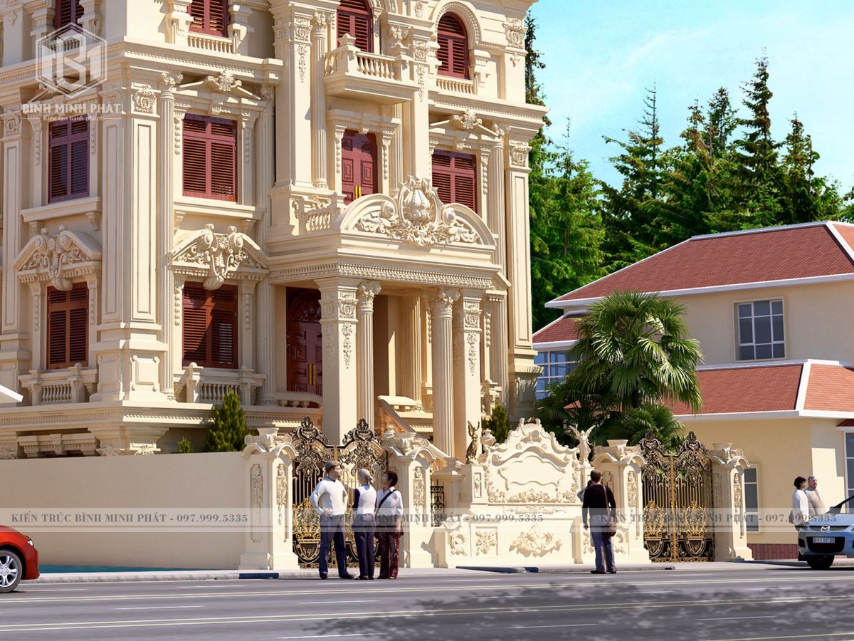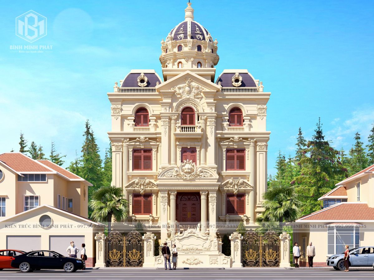Kiến trúc Bình Minh Phát sở hữu các công trình thiết kế lâu đài, dinh thự, biệt thự, nhà ở kiến trúc cổ điển, tân cổ điển đẹp hoàn mỹ, choáng ngợp, lộng lẫy, tráng lệ đến vô cùng. Với tài năng và nhiều năm kinh nghiệm trong thiết kế kiến trúc, đội ngũ kiến trúc sư của Kiến trúc Bình Minh Phát đã hoàn toàn chinh phục được trái tim của ông Hưng ở Thường Tín với mẫu thiết kế biệt thự lâu đài 3 tầng cổ điển.Từng chi tiết kiến trúc được thiết kế đẹp mắt, tinh tế, chiếm được nhiều tình cảm của gia chủ và sự đánh giá cao từ giới kiến trúc.