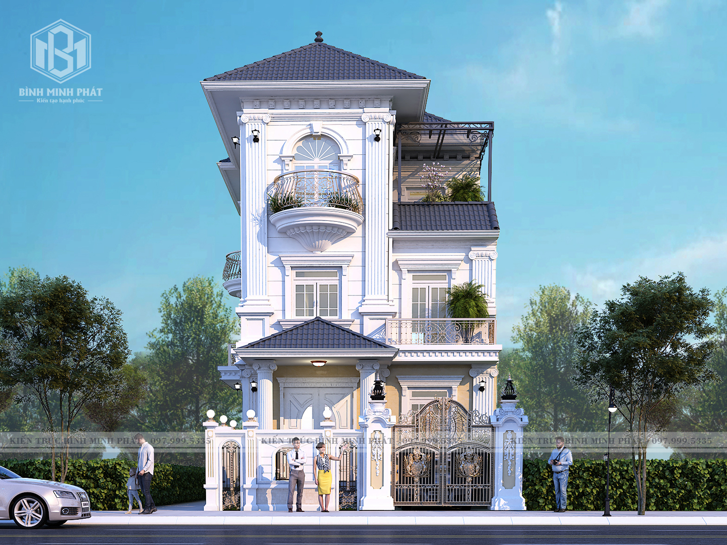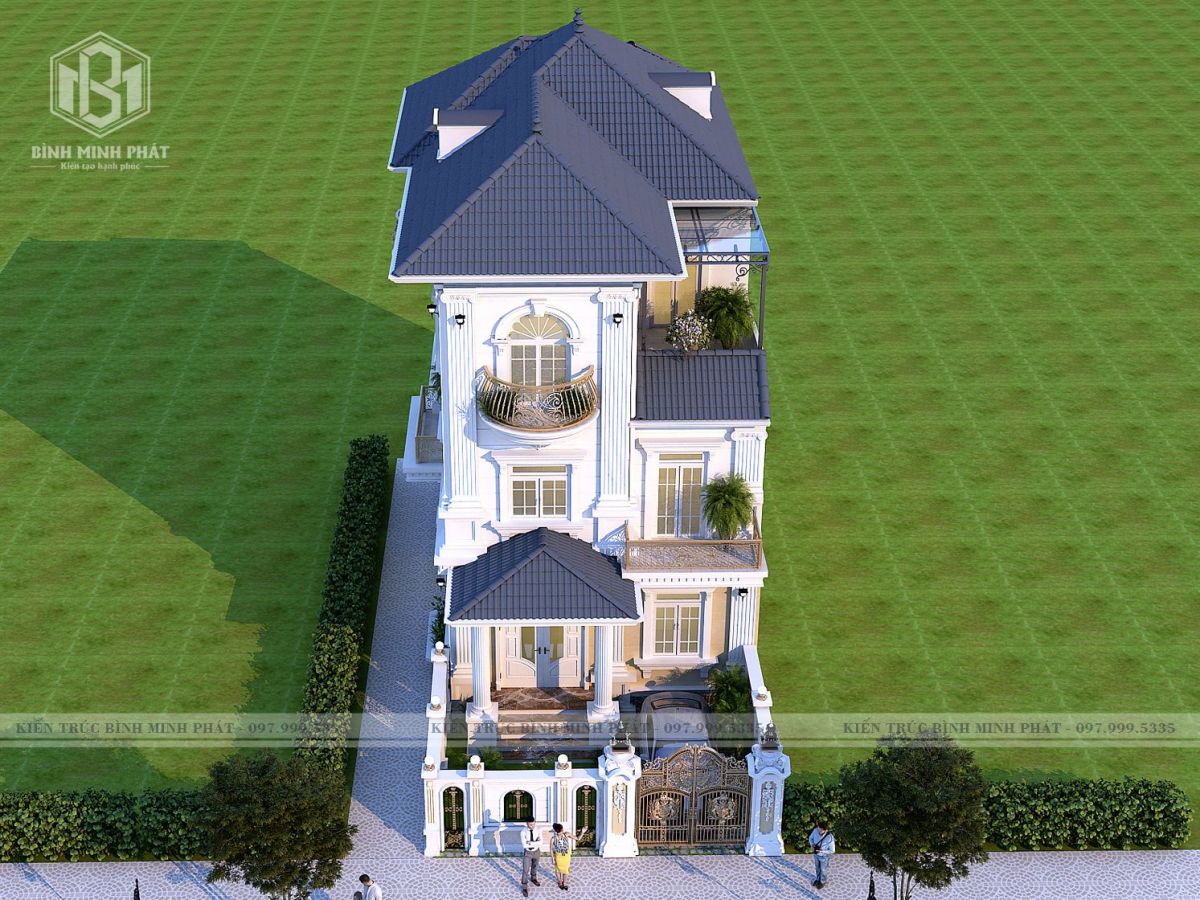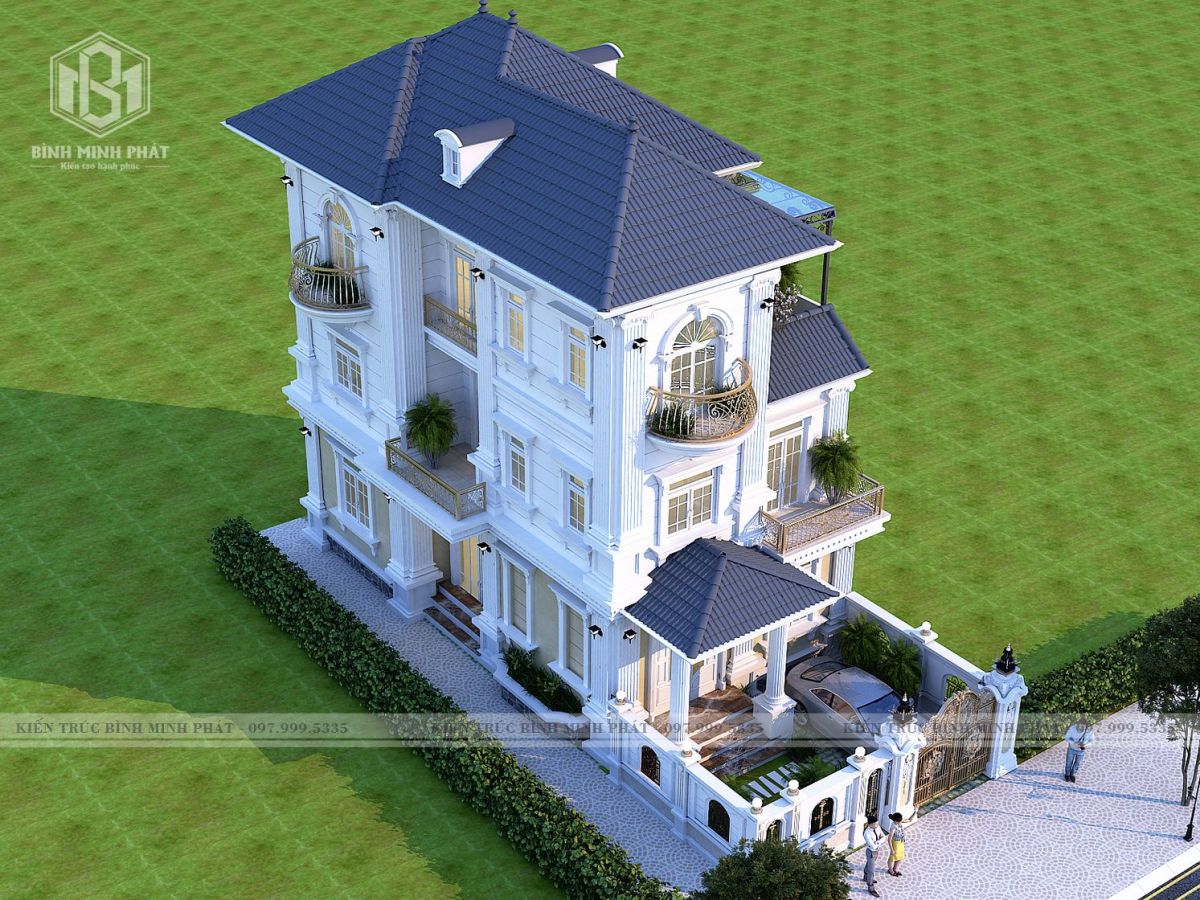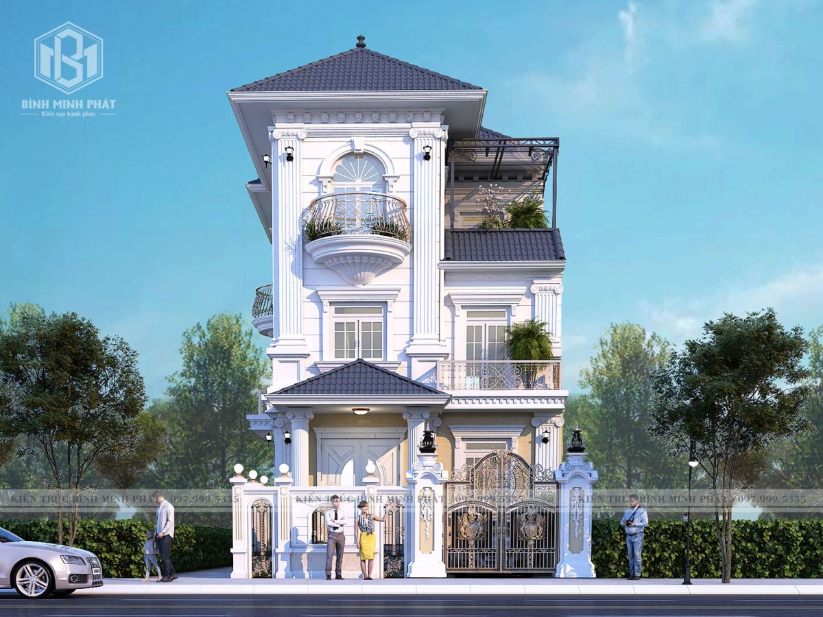2. Phối cảnh 3D của mẫu thiết kế biệt thự tân cổ điển mái Nhật 3 tầng tại Bắc Ninh BT311
