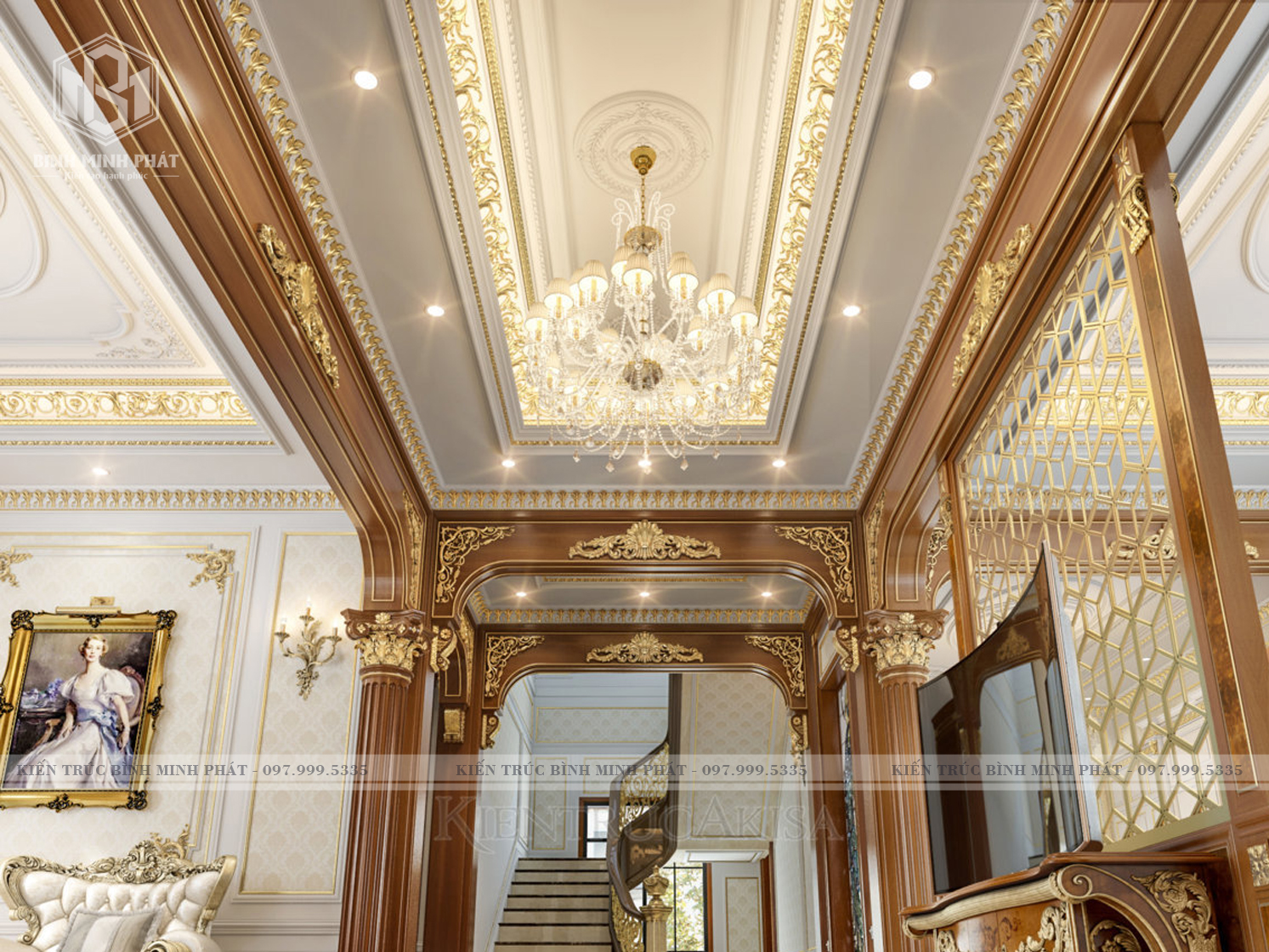 Trên đây là một số hình ảnh 3D của phương án thiết kế nội thất tân cổ điển gỗ tự nhiên NTCD04 của gia đình ông Quang tại Hà Nam, quý bạn đọc vui lòng liên hệ số Hotline : 097.999.5335 để biết thêm thông tin chi tiết và nhận tư vấn từ Bình Minh Phát!